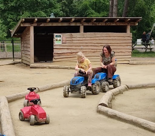 Oh, en er waren ook nog trap-traktors, waar ik heus nog steeds met mijn fijn poezelig derrière op pas, zodat ik met nichtje Josh kon spelen.