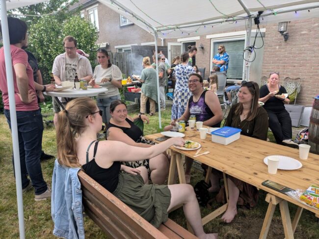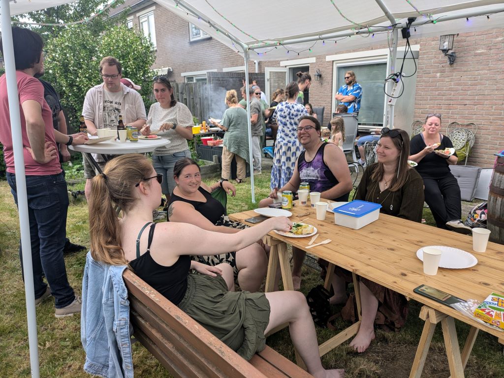 Net zoals ik is hij gewend dat bij lange na niet alle genodigden komen opdagen als je in de zomerperiode jarig bent, dus hij had een hoop uitnodigingen voor zijn feestje de wereld in gestuurd. Bleek bijna iedereen te kunnen… waardoor er ineens zo’n 35 gasten in de tuin moesten worden gepropt en van voedsel moesten worden voorzien! ![]()