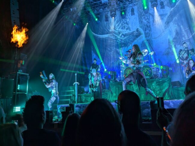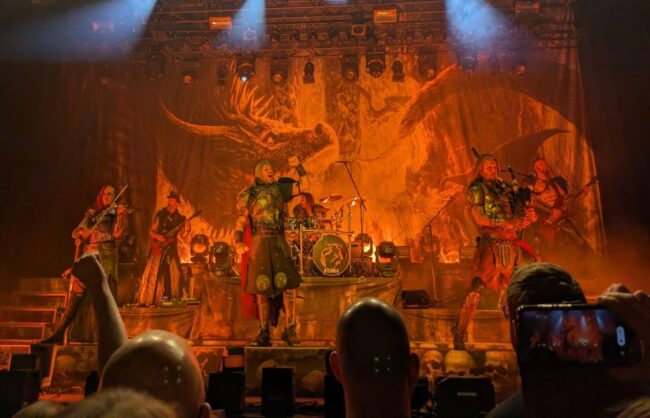 Vooral Feuerschwanz had een epische show ervan gemaakt. Ik had vooraf wat videoclips van hen op Youtube bekeken en toen kreeg ik de indruk dat ze vooral zichzelf Heul Erg Stoer vonden, maar live viel dat vanwege de interactie met het publiek mee. Er waren uitgebreide kostuums (her en der met een LARP-vibe) en er was vuur, véél vuur! Van vlammen die uit de rand van het podium kwamen tot fakkels en een soort vlammenwerper, waarmee de ‘achtergronddanseres’ (bij gebrek aan een beter woord voor de decoratieve vikingdame die in chainmail-bikini met vuurelementen, vlaggen en een LARP-speer over het podium sjouwde) speelde.