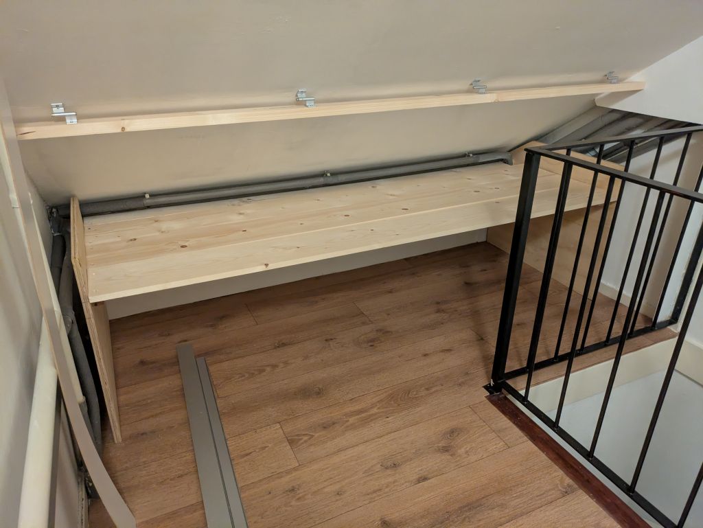 Aangezien Richard bij me intrekt, zijn we momenteel hard bezig mijn huis gereed te maken voor zijn komst. Naast ontspullen en het leggen van laminaat op zolder, hebben we ook een knieschot gemaakt – zo’n kastje dat je onder de schuine dakrand van je zolder plaatst om de ruimte daar wat effectiever te kunnen benutten. Ik had vooraf al gedacht dat we daar twee dagen voor nodig gingen hebben, en dat klopte, maar het was toch een lastiger klusje dan ik had gehoopt.